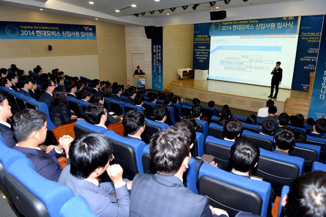 현대모비스가 25일 2014년 하반기 입사한 신입사원 160명에 대한 입사식을 경기도 용인에 위치한 기술연구소에서 가졌다.