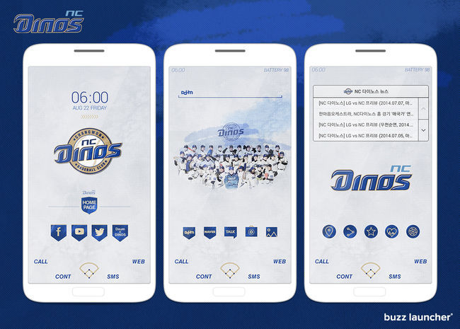 이번에 출시되는 NC 다이노스 공식 버즈런처 홈팩은 구단 엠블럼, 슬로건 등 이미지를 배경으로 NC 다이노스의 구단 전용 기사, 스케쥴, 경기중계 등을 확인할 수 있는 최적화 된 위젯이 탑재돼 있으며, NC 다이노스의 최신 소식과 컨텐츠를 만나볼 수 있는 구단 전용 SNS(페이스북, 유튜브, 트위터) 채널 바로가기가 제공된다.