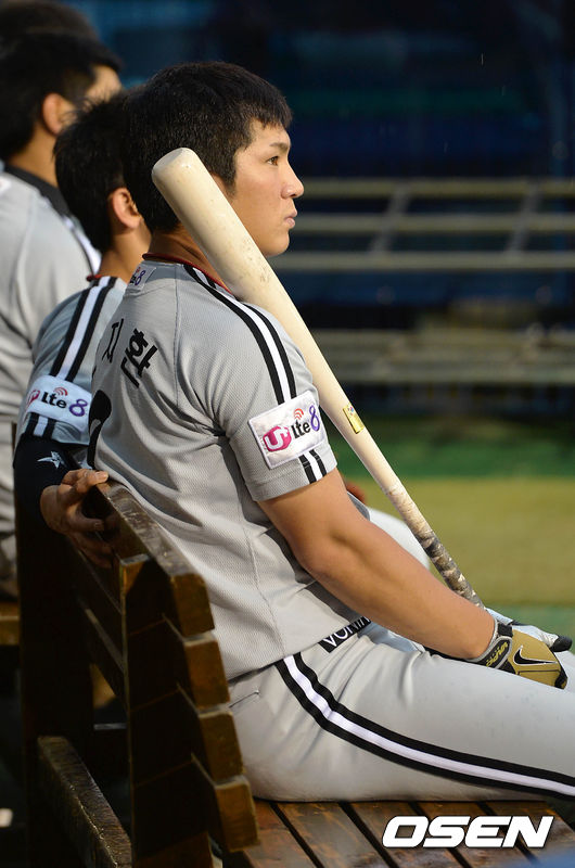 경기장에 비가 내리가 LG 오지환이 더그아웃에서 그라운드를 바라보고 있다. /sunday@osen.co.kr