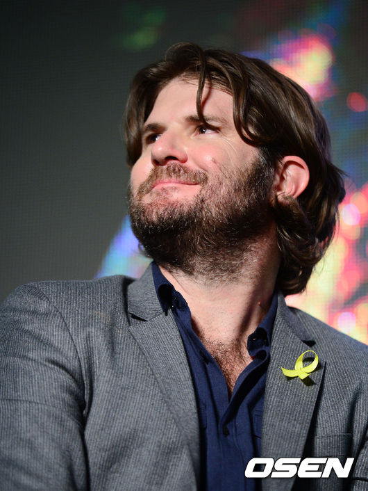 조나단 리브스만 감독이 무대에서 포즈를 취하고 있다. 이날 행사에는 메간 폭스를 비롯해 조나단 리브스만 감독, 제작자 브래드 풀러, 앤드류 폼이 참석했다.