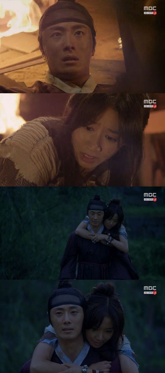 '야경꾼일지' 정일우와 고성희가 화염 속 위기를 함께 겪으며, 애정에도 불이 붙었다.