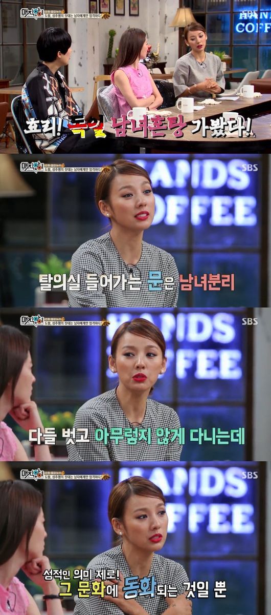 '매직아이'의 이효리가 남편인 기타리스트 이상순과 독일의 남녀혼탕에 방문한 경험을 공개했다.