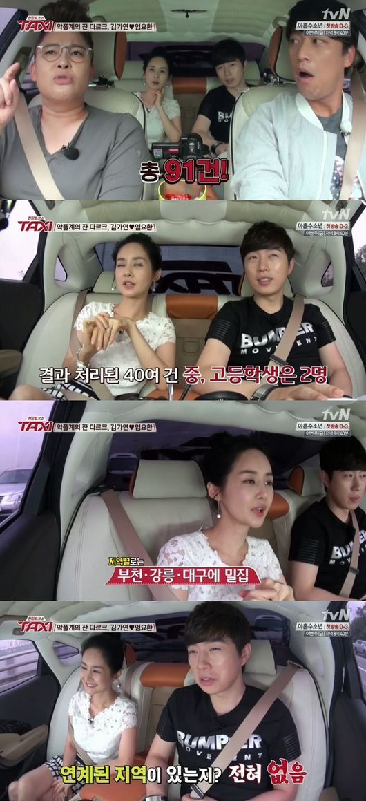 26일 방송된 tvN '현장토크쇼 택시'(이하 '택시')에는 김가연-임요환 부부가 출연해 두 사람의 이야기를 풀어냈다.