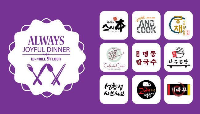 새롭게 만나는 W몰의 9층 식당가는 식당가 전체의 벽면에 W몰의 ‘W’를 형상화 한 라이트를 삽입, 주간과 야간의 포인트 컬러가 자동 교체되면서 분위기를 다르게 연출하는 독특한 ‘반전매력 인테리어’로 눈길을 끈다. 또, 쇼핑하는 고객들이 편안한 분위기에서 담소를 나누고, 쉬어 갈 수 있도록 조명을 한 톤 낮게 사용하는 등 라이트를 적극 활용한 점이 특징이다.