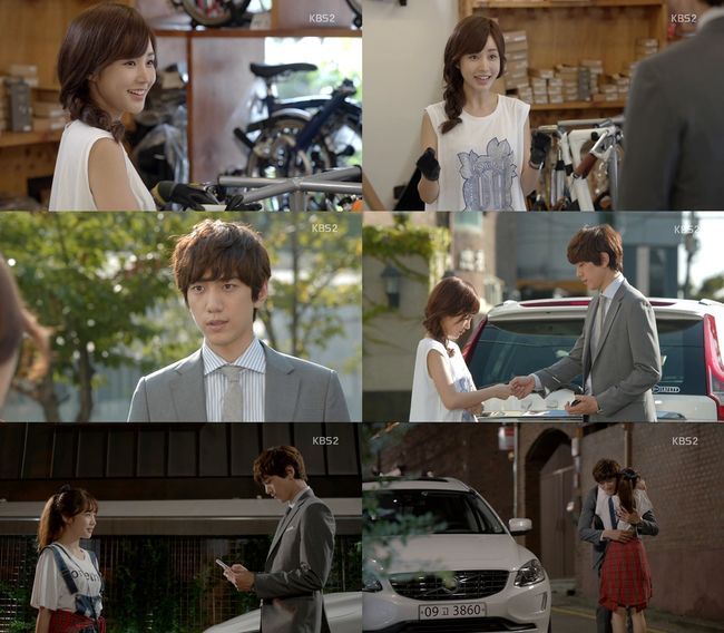 배우 윤진이가 KBS 2TV 월화드라마 '연애의 발견(연출 김성윤,이응복/극본 정현정)'에서 성준(남하진 역)의 품에 와락 안겼다.