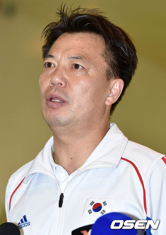 펜싱 심재성 감독이 인터뷰를 하고 있다.