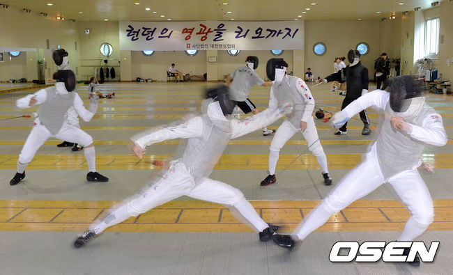 펜싱 대표팀 선수들이 훈련을 하고 있다.