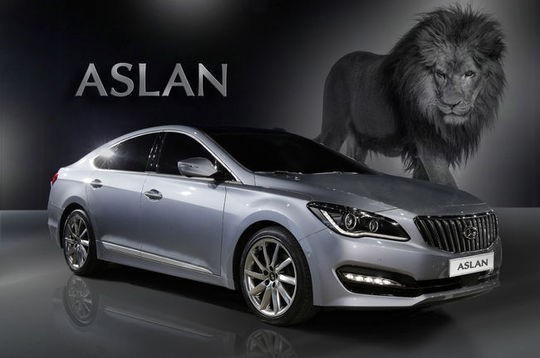 '아슬란'은 품격있는 디자인, 최첨단 사양이 적용되는 신개념 프리미엄 세단. '아슬란'은 '사자(獅子)'라는 의미의 터키어로 '세련되고 위풍당당한 카리스마가 돋보이는 세단'이라는 콘셉트를 반영한 차명이다.