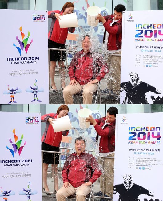 김성일 2014 인천장애인아시아경기대회(이하 인천장애인AG) 조직위원장이 루게릭병 환자 후원을 위한 아이스버킷 챌린지(얼음물 샤워 캠페인)행사에 동참했다.