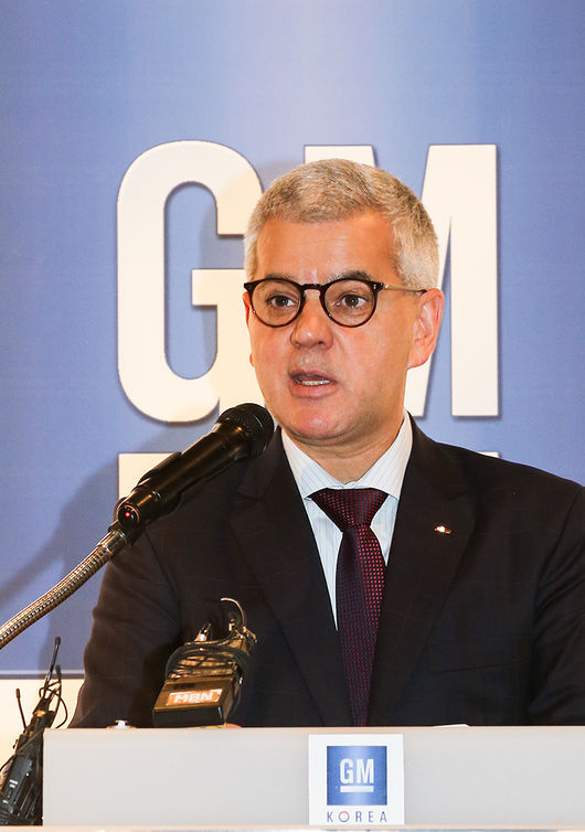 기자회견 하는 세르지오 호샤 사장. /한국지엠 제공.