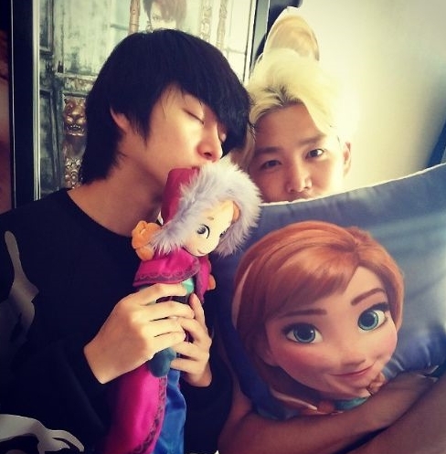 공개된 사진 속 김희철은 안나 인형에게 입을 맞추고 있고, 강인은 안나가 그려진 쿠션을 껴안은 채 카메라를 응시하고 있어 웃음을 자아냈다.