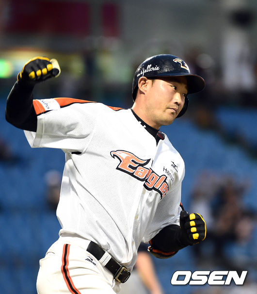 27일 대전야구장에서 벌어진 '2014 한국 야쿠르트세븐 프로야구' 한화 이글스와 NC 다이노스의 경기,2회말 2사 만루 송광민이 만루홈런을 치고 환호하고 있다.