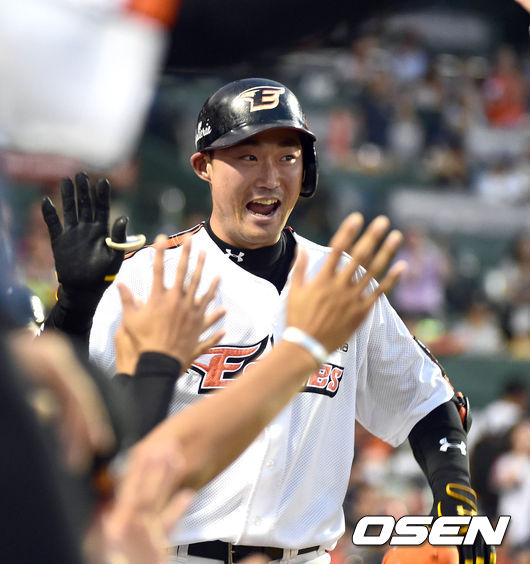 27일 대전야구장에서 벌어진 '2014 한국 야쿠르트세븐 프로야구' 한화 이글스와 NC 다이노스의 경기,2회말 2사 만루 송광민이 만루홈런을 치고 환호하고 있다.