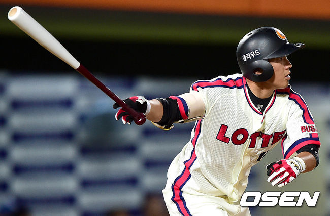3회말 롯데 공격 선두타자로 나선 하준호가 추격의 중월 솔로포를 날리고 있다.