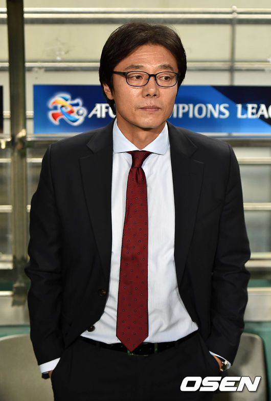 경기에 앞서 포항 황선홍 감독이 그라운드를 바라보고 있다.