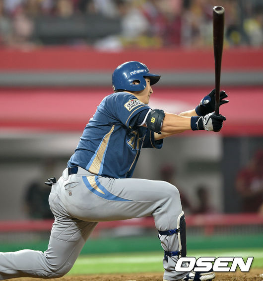 NC 간판스타 나성범이 추격의 솔로 홈런을 터뜨렸다. 벌써 27호다.