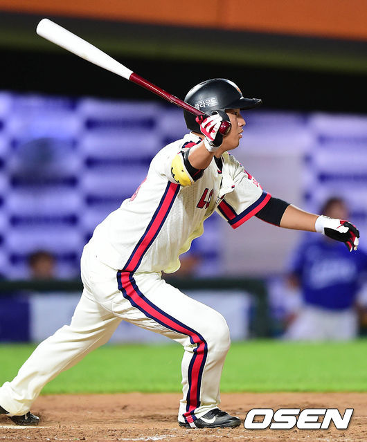 4회말 롯데 공격 2사 1, 2루 상황 하준호가 추격의 1타점 적시 중전안타를 날리고 있다.