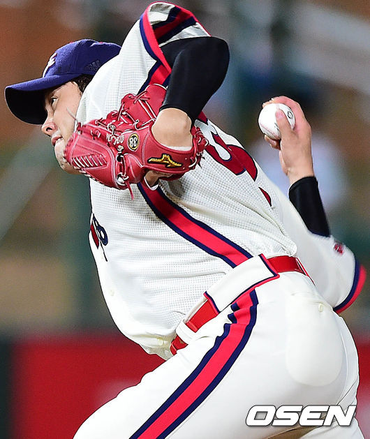 6회초 삼성 공격 1사 주자없는 상황 마운드에 오른 롯데 투수 정대현이 힘차게 공을 뿌리고 있다.
