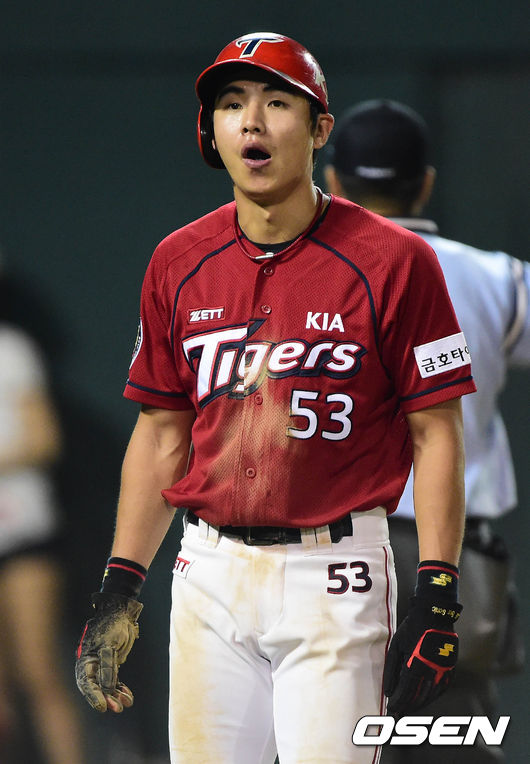 27일 오후 서울 목동구장에서 열린 '2014 한국야쿠르트 세븐 프로야구' 넥센 히어로즈와 KIA 타이거즈의 경기 7회초 2사 1,2루 박기남 타석, 폭투에 홈까지 쇄도하던 2루대주자 이대형이 홈에서 태그아웃 당하고 덕아웃으로 향하고 있다.