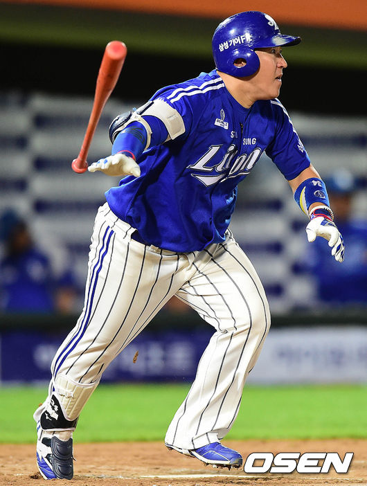 7회초 삼성 공격 2사 2루 상황 최형우가 추격의 1타점 중전안타를 날리고 있다.