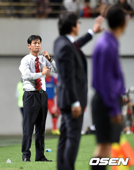 연장 전반 서울 최용수 감독과 포항 황선홍 감독이 선수들에게 작전을 지시하고 있다.