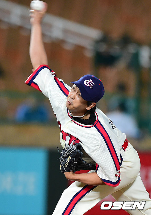 9회초 삼성 공격 때 마운드에 오른 롯데 투수 심수창이 힘차게 공을 뿌리고 있다.