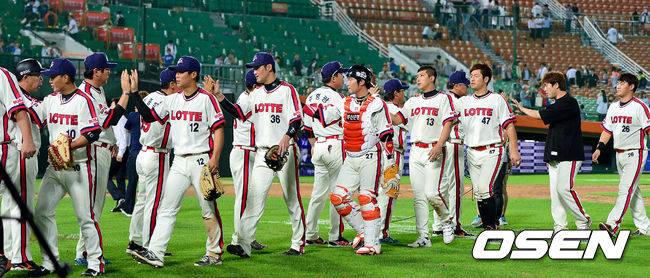 롯데 선수들과 코칭스태프가 하이파이브 인사를 나누고 있다. /dreamer@osen.co.kr