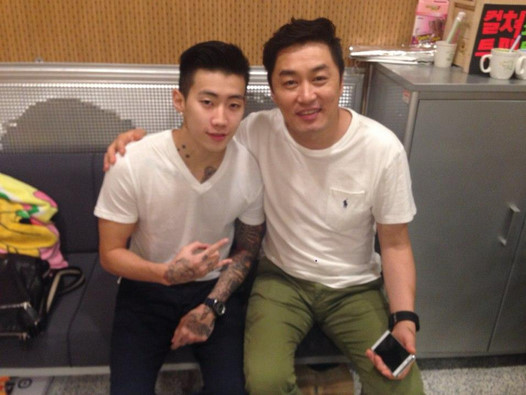 공개된 사진 속에는 박재범의 어깨에 다정히 손을 두르고 인자한 웃음을 짓고 있는 정찬우와 그의 곁에서 수줍은 미소를 짓고 카메라를 향해 ‘평화(Peace)’를 상징하는 손 모양을 그리고 있는 박재범의 모습이 보인다. 특히 박재범은 뽀얀 피부위에 새겨진 다양한 무늬의 타투로 보는 이들의 시선을 사로잡고 있다.