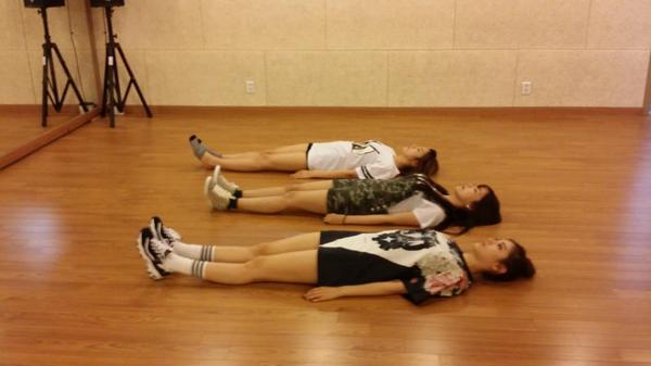 공개된 사진 속 오렌지캬라멜 멤버들은 연습실 바닥에 정자세로 누워있다. 특히 세 사람은 쭉 뻗은 늘씬한 각선미를 선보여 눈길을 끌었다.