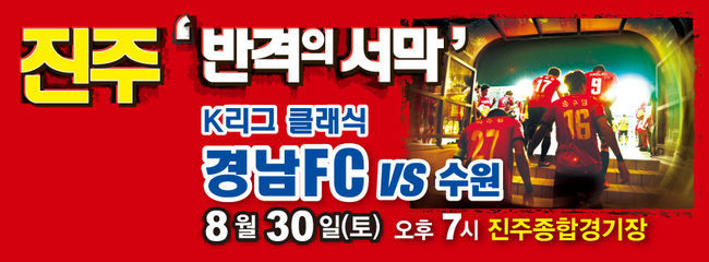경남FC가 30일(토) 오후 7시 열리는 수원과의 K리그 클래식 32라운드 홈 경기를 진주종합경기장에서 치른다.