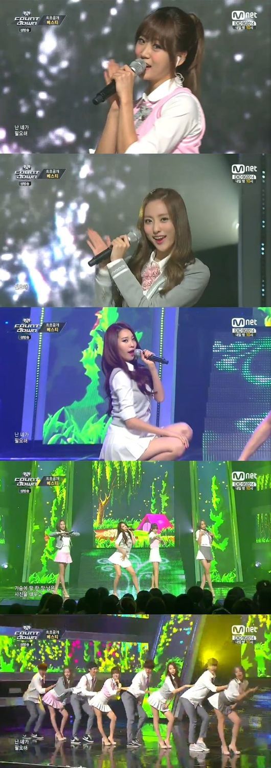 베스티는 28일 오후 방송된 엠넷 '엠카운트다운'에서 신곡 '니가 필요해'를 열창했다.