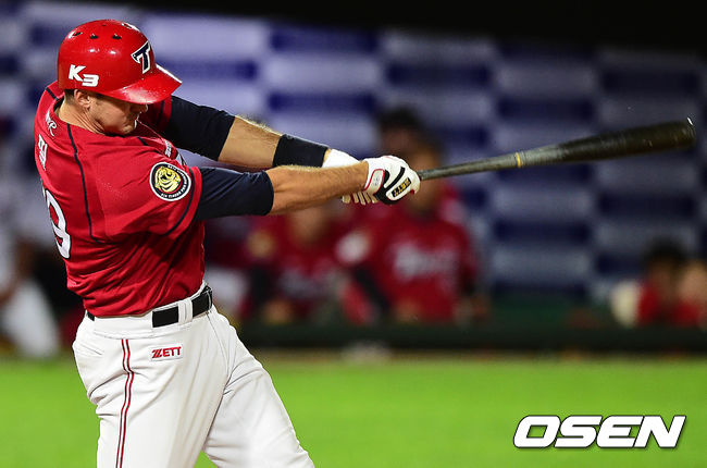 3회초 KIA 공격 1사 3루 상황 필이 선제 중월 투런포를 날리고 있다.
