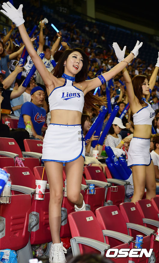 28일 오후 서울 잠실야구장에서 열린 '2014 한국야쿠르트 세븐 프로야구' 두산 베어스와 삼성 라이온즈의 경기, 삼성 치어리더 이연주가 열띤 응원을 펼치고 있다.