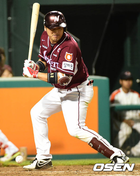 28일 대전야구장에서 벌어진 '2014 한국 야쿠르트세븐 프로야구' 한화 이글스와 넥센 히어로즈의 경기,8회초 1사 2루 이택근이 윤근영의 투구에 맞고 있다. 유한준으로 교체됐다.