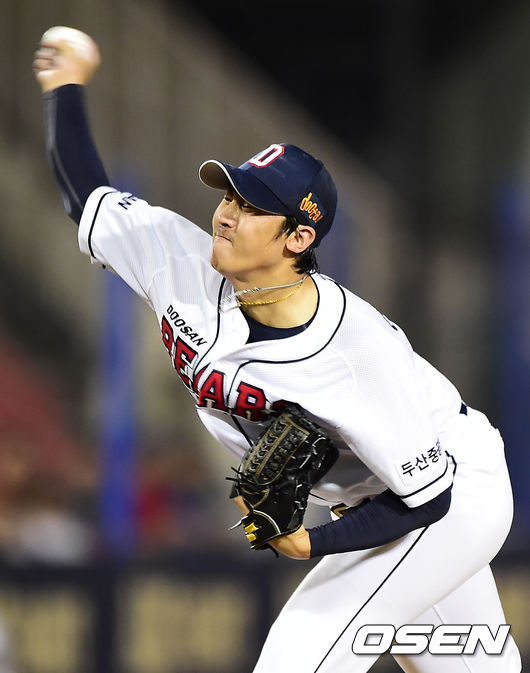 28일 오후 서울 잠실야구장에서 열린 '2014 한국야쿠르트 세븐 프로야구' 두산 베어스와 삼성 라이온즈의 경기, 9회초 마운드에 오른 두산 이용찬이 힘차게 공을 뿌리고 있다.