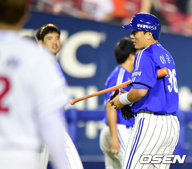 9회초 2사 주자 2루 삼성 이승엽이 타석에서 삼진아웃을 당한 후 아쉬운 표정을 지으며 경기가 끝나고 있다. / rumi@osen.co.kr