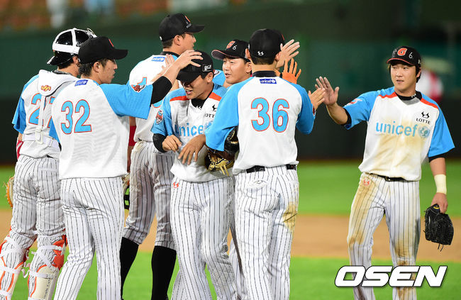 롯데 선수들이 마운드에서 하이파이브를 나누고 있다./dreamer@osen.co.kr