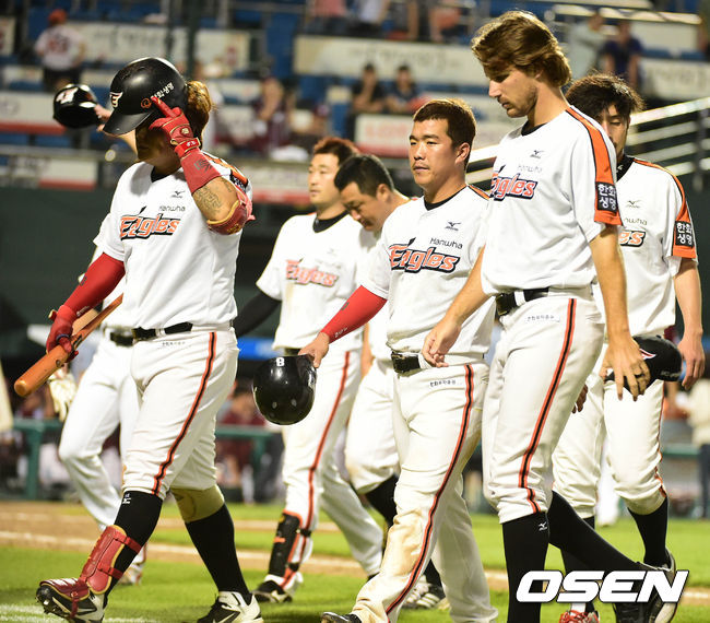 28일 대전야구장에서 벌어진 '2014 한국 야쿠르트세븐 프로야구' 한화 이글스와 넥센 히어로즈의 경기, 4-10으로 패한 한화 정근우가 아쉬운 표정으로 더그아웃으로 가고 있다.