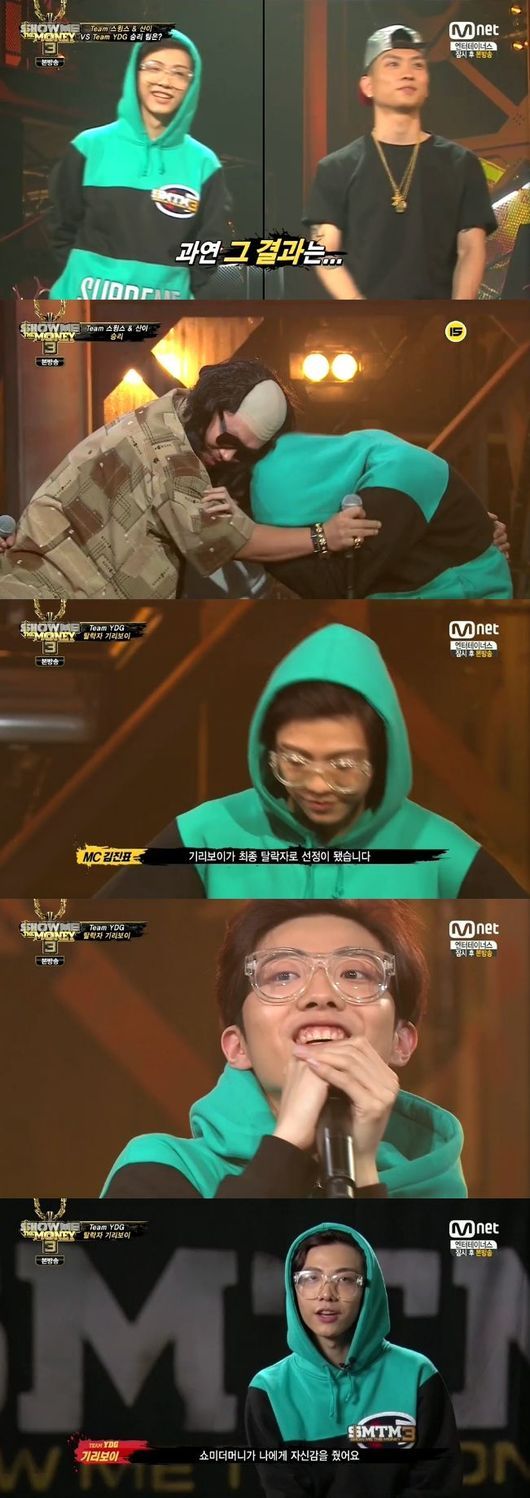 기리보이는 28일 오후 방송된 엠넷 래퍼 서바이벌 '쇼미더머니3'에서 함께 양동근 팀에 속해 있던 아이언보다 더 낮은 공연비를 획득해 탈락하게 됐다.