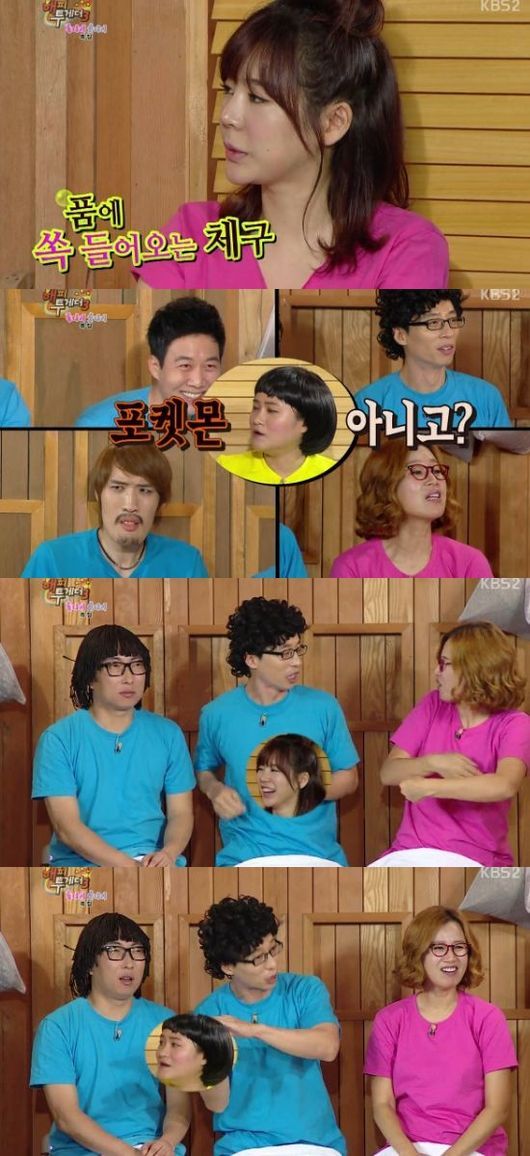 유재석은 28일 오후 방송된 KBS 2TV '해피투게더3'에서 "넣고 싶은 데가 다르다"며 "써니는 주머니에 넣고 싶고, 신영은 집안 서랍에"라고 말했다.