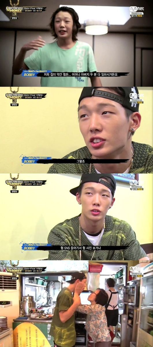 바비는 28일 오후 방송된 엠넷 래퍼 서바이벌 '쇼미더머니3'에서 "꿈을 쫓겠다고 아무것도 모르고 엄마랑 헤어져서 한국에 와 있다. 엄마를 못 본지 4년 돼 간다. 형 SNS에 들어가서 사진을 보거나 최근 근황 보면 좀 웃게 된다. 매일 보고 싶다"라고 말해 안타까움을 자아냈다.
