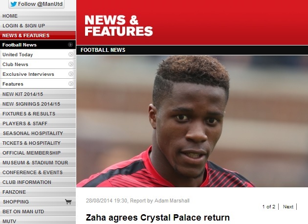 맨체스터 유나이티드의 공격수 윌프레드 자하(22)가 친정팀인 크리스탈 팰리스로 임대 복귀했다.