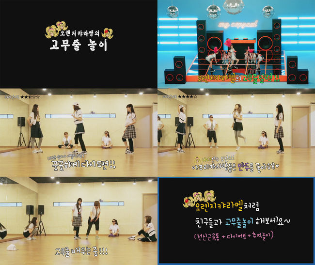 걸그룹 오렌지캬라멜이 고무줄 놀이 안무 영상을 공개했다.