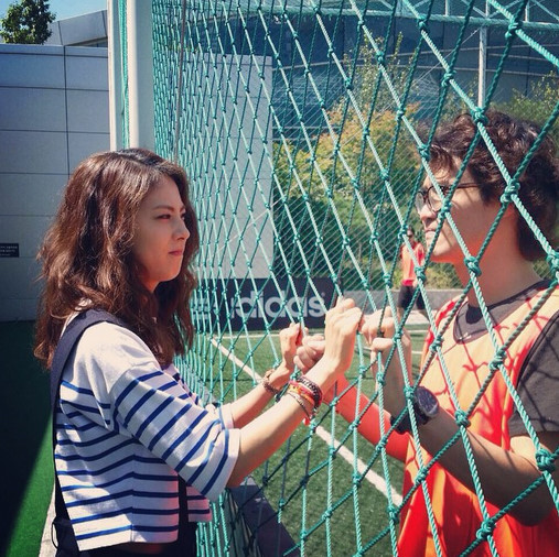 공개된 사진 속에는 철조망을 사이에 둔 채 장난스러운 표정으로 서로를 바라보고 있는 박지윤과 조정치의 모습이 보인다. 특히 박지윤은 얼굴을 일그러뜨린 익살스러운 표정에도 굴욕 없는 미모와 여전히 가녀린 몸매가 보는 이들의 시선을 사로잡고 있다.