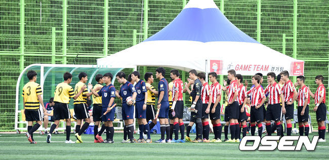 경기시작전 양팀 선수들이 인사를 나누고 있다.