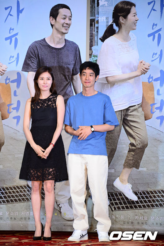 29일 오후 서울 건대 롯데시네마에서 진행된 영화 '자유의 언덕' 언론배급시사회에서 문소리와 카세 료가 포토타임을 갖고 있다.
