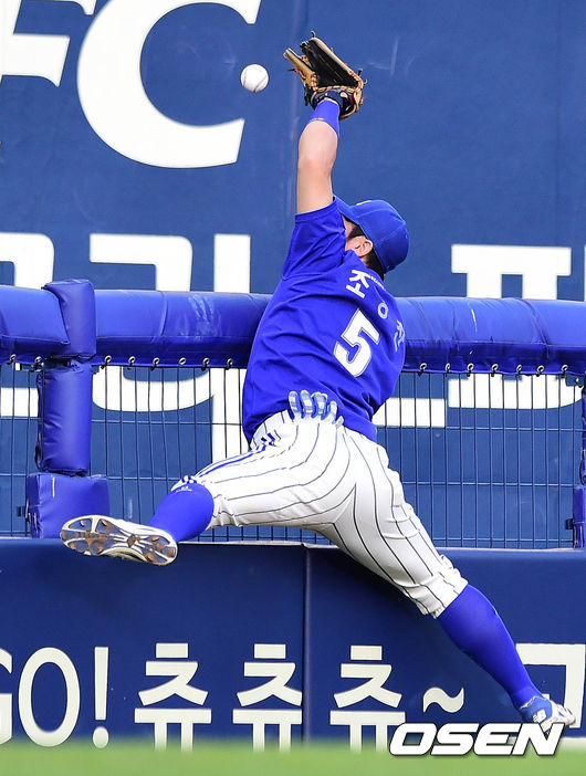 29일 오후 서울 잠실구장에서 열린 '2014 한국야쿠르트 세븐 프로야구' 두산 베어스와 삼성 라이온즈의 경기 1회말 2사 김현수의 뜬공을 조동찬이 놓치고 있다.