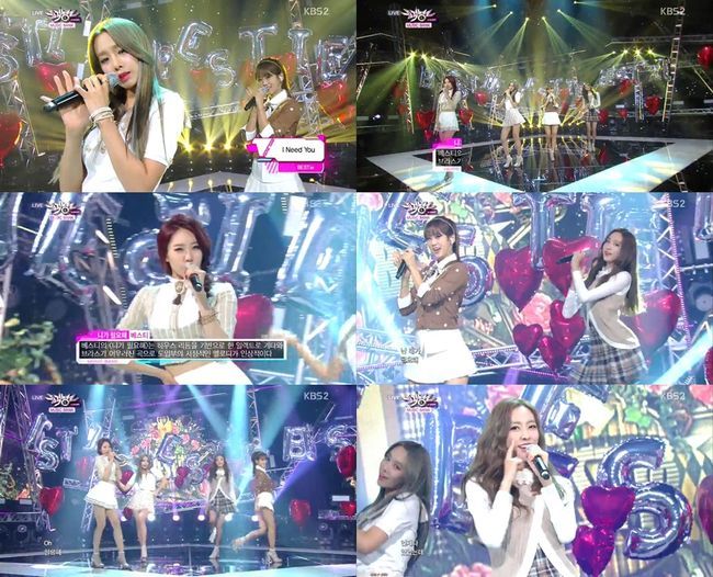 베스티는 29일 오후 방송된 KBS 2TV '뮤직뱅크'에서 타이틀곡 '니가 필요해'를 열창하며 화려한 무대를 꾸몄다.