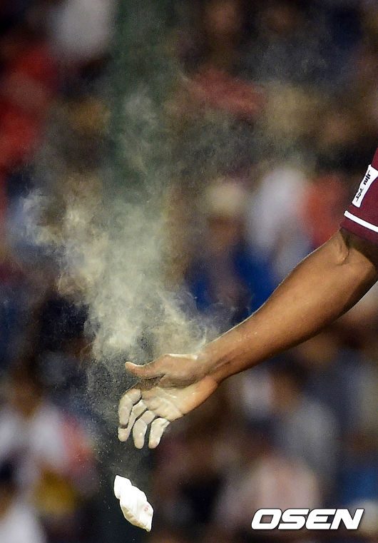 28일 대전야구장에서 벌어진 '2014 한국 야쿠르트세븐 프로야구' 한화 이글스와 넥센 히어로즈의 경기, 3회말 소사가 로진백을 던지고 있다.