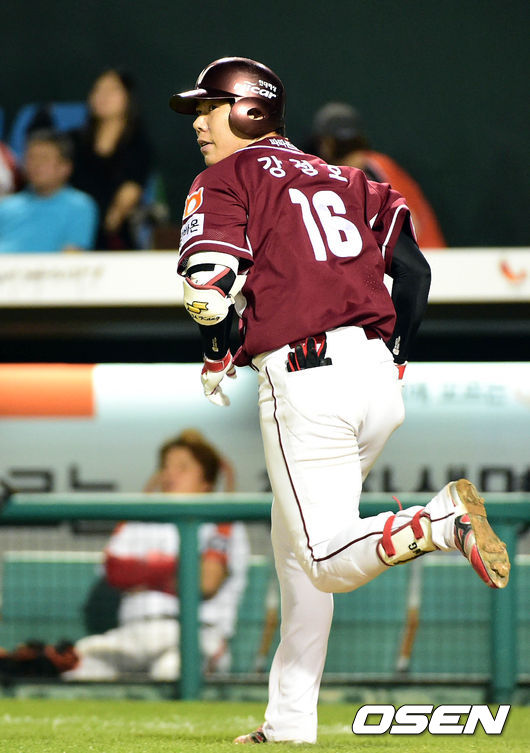 28일 대전야구장에서 벌어진 '2014 한국 야쿠르트세븐 프로야구' 한화 이글스와 넥센 히어로즈의 경기, 5회초 무사 1,2루 강정호가 역전 스리런 홈런을 치고 타구를 바라보고 있다.